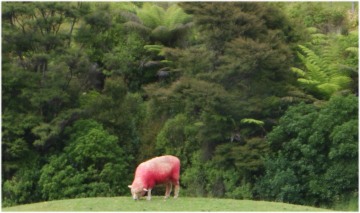 (Below left) Whangarei Falls; you can walk to the bottom but I had the wrong shoes on, lol. Then, as I was driving towards Auckland I thought I could see pink sheep. Great for pink jumpers or socks? And no, I haven't cheated!