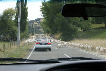 is a rare treat. The amazing tractor is on the beach at Castlepoint and used to launch the huge jet boats Below, sheep on the road, and ... with apologies for quality, 4 people and 3 dogs on a quad bike. (As you can imagine, I'm gutted about the poor quality pic) |