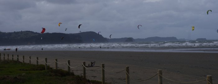 were out there until dark ! It's Orewa Beach |