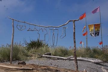 smudges, I've got muck in my camera!!Below and right; Many beaches collect lots of driftwood that makes great piles to explore! Yes, stuff that would sell for loads in the UK is firewood and art here. Hokitika is one of the places that holds a competition. Here are some of our favourite entries ![]() |