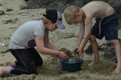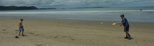It's the first time Han and Dan have seen snow.  The same afternoon we went to Orewa beach.  The Kiwis think us Brits are funny having a washing-up bowl.  We say, we can't be without one, what would you make sand pies in if you didn't have one?