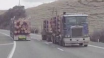 The first, loaded timber lorries going in opposite directions, seems crazy?