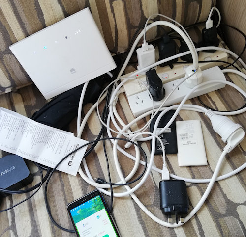Some stuff needs UK sockets and some are NZ so we have 2 plugboards, one for